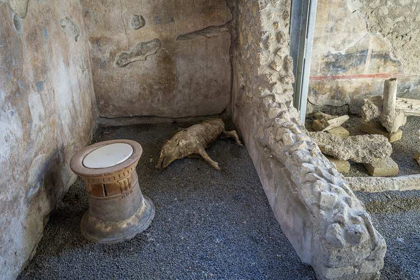 La cucina della villa conserva strutture murarie destinate alla preparazione dei cibi e un piccolo larario, ovvero un altare domestico dedicato al culto dei Lari e dei Penati, divinità protettrici della casa e della famiglia. 🕯️