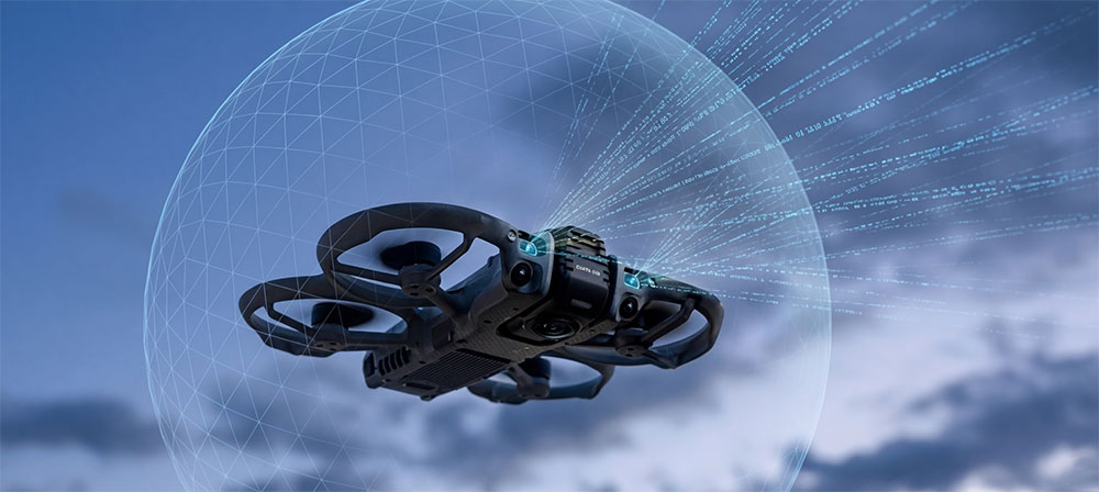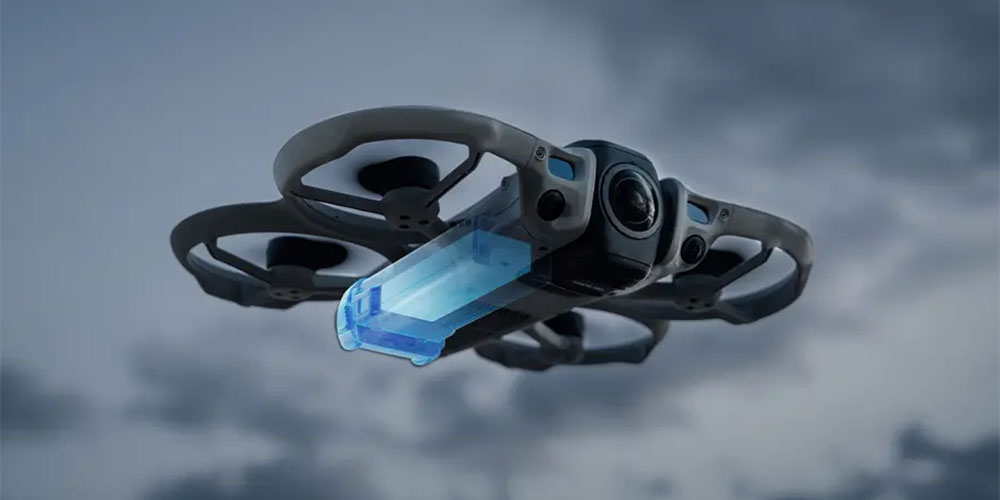 È un’impostazione coerente con la natura stessa del velivolo, pensato per passaggi bassi, traiettorie aggressive, inseguimenti e voli in contesti più complessi del solito, dove la protezione fisica diventa parte integrante dell’esperienza tanto quanto la camera.