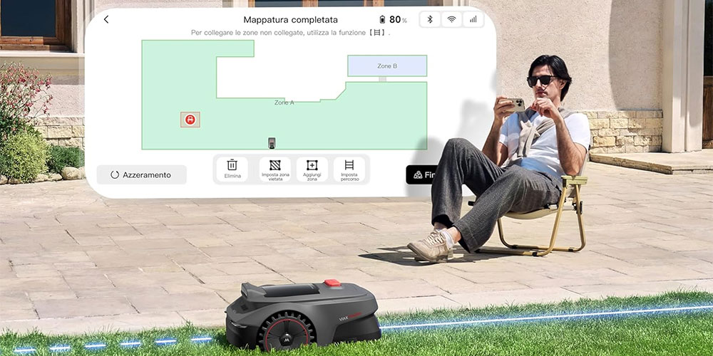 Il supporto alla gestione multi-zona e alla doppia mappa consente inoltre di gestire con una certa flessibilità anche giardini più articolati o divisi, senza dover ricorrere a interventi manuali complessi.