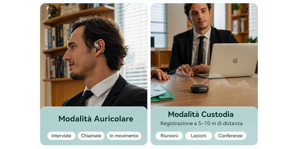 Nella nostra prova d’uso, la custodia si è rivelata particolarmente efficace in scenari rapidi e non strutturati: domande improvvise, scambi di opinione fugaci, riunioni nate senza agenda. È lì che un registratore tradizionale tende a restare nello zaino o in un’app che si apre troppo tardi.