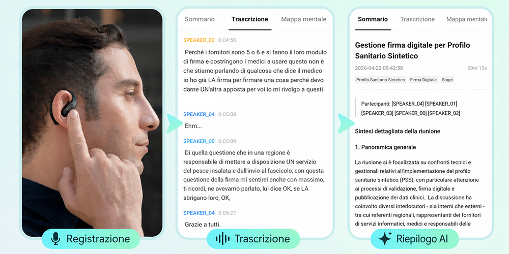 Si indossano i Pods, si avvia la registrazione e la conversazione viene acquisita in modo diretto e continuo.