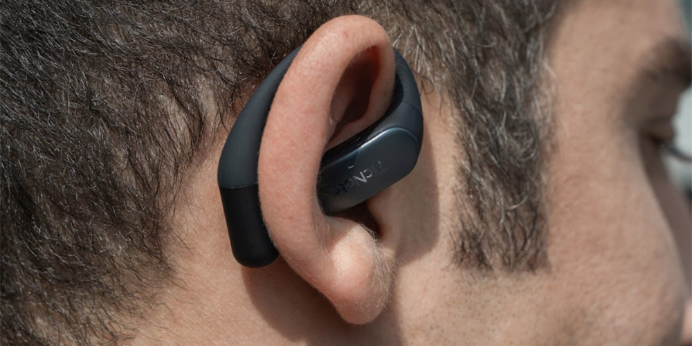 La scelta del formato open-ear è meno marginale di quanto possa sembrare. I TicNote Pods non entrano nel canale uditivo e non cercano di ricreare quella bolla acustica tipica degli auricolari in-ear con cancellazione attiva del rumore. Si appoggiano appena all’orecchio con una struttura leggera (7 g) ma sufficientemente stabile, progettata per garantire comfort prolungato durante una giornata di lavoro più che assecondare attività sportive intense.